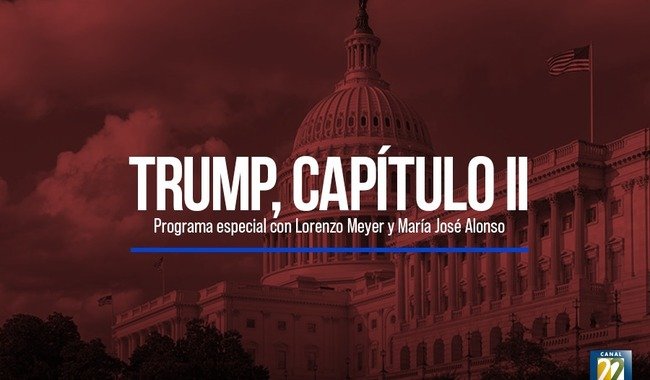 Ciudad de México, a 17 de enero del 2025. A días de la toma de protesta de Donald Trump en su segundo mandato, Canal 22 estrena un programa especial en el que María José Alonso conversa con el Dr. Lorenzo Meyer sobre las implicaciones que tendrá su presidencia en la relación bilateral con México y sobre lo que llevó al electorado estadounidense a votar de nueva cuenta por el republicano.