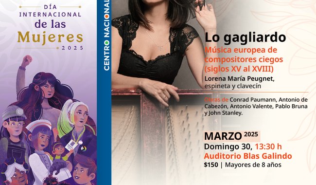 Finalmente, el domingo 30, a las 13:30 h, se realizará el concierto “Lo gagliardo: compositores ciegos del siglo XV al XVIII”, con la participación de Lorena María Peugnet, (espineta y clavecín), quien interpretará un repertorio para tecla de compositores ciegos: desde la Alemania del siglo XV, representada por Conrad Paumann, hasta el Barroco del siglo XVIII en Inglaterra con voluntarios de John Stanley; pasando por la Italia gagliarda de Antonio Valente y las texturas polifónicas de España con Antonio de Cabezón y Pablo Bruna.