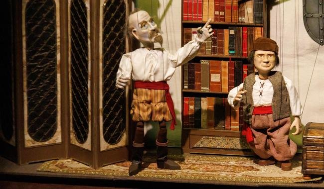 - La puesta en escena, que se basa en dos pasajes de Don Quijote de La Mancha, encanta al público con su originalidad y uso de diversas técnicas de marionetas