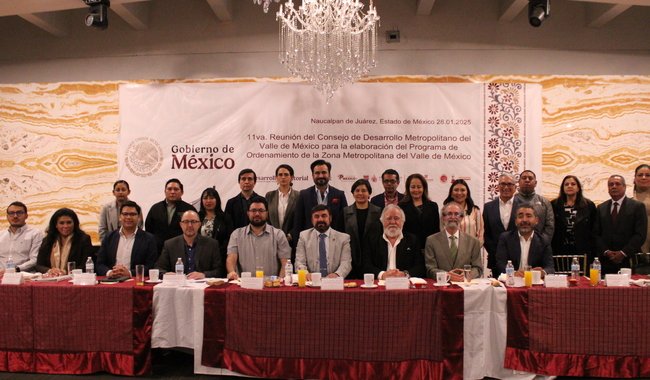 Naucalpan de Juárez, Estado de México; 28 de enero de 2025.- La Secretaría de Desarrollo Agrario, Territorial y Urbano (Sedatu) en coordinación con los gobiernos del Estado de México, Ciudad de México e Hidalgo, impulsan una agenda de trabajo que establece los mecanismos para fortalecer el ordenamiento territorial y la gobernanza en la Zona Metropolitana del Valle de México.