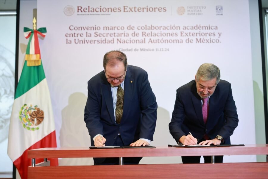 En el marco de esta ceremonia, los titulares de la secretaría de Relaciones Exteriores y de la UNAM firmaron un convenio de colaboración que apoyará la organización y el desarrollo de proyectos de investigación en materia migratoria que coadyuvarán en la atención y orientación de las personas migrantes mexicanas en Estados Unidos.