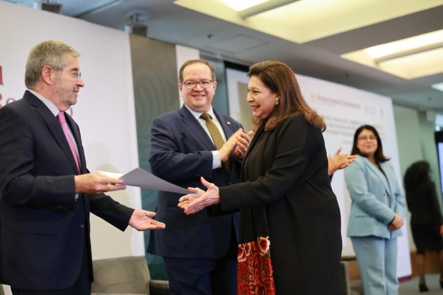 Acompañado por la secretaria designada de Ciencia, Humanidades, Tecnología e Innovación, Rosaura Ruiz Gutiérrez y por el rector de la Universidad Nacional Autónoma de México (UNAM), Leonardo Lomelí Vanegas, el canciller De la Fuente refrendó el compromiso de instrumentar una política exterior feminista, que incorpore la perspectiva de género en todos los programas del Instituto Matías Romero, para abordar las desigualdades estructurales y las barreras que siguen enfrentando las mujeres a nivel global, nacional y regional.