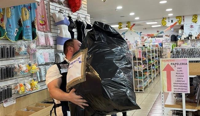 Hasta las 17 horas, después de haberse revisado una cuarta parte de la tienda, las autoridades federales y estatales habían decomisado más de 35 mil piezas de mercancía.