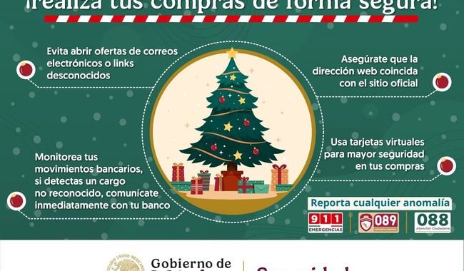 n temporada decembrina, los comercios y plataformas digitales que ofrecen productos y servicios, dan a conocer descuentos y promociones, por lo que la Secretaría de Seguridad y Protección Ciudadana (SSPC), a través de la Dirección General de Gestión de Servicios, Ciberseguridad y Desarrollo Tecnológico, invita a la ciudadanía a tomar precauciones y estar alerta para evitar ser víctimas de ciberfraudes o ciberataques.