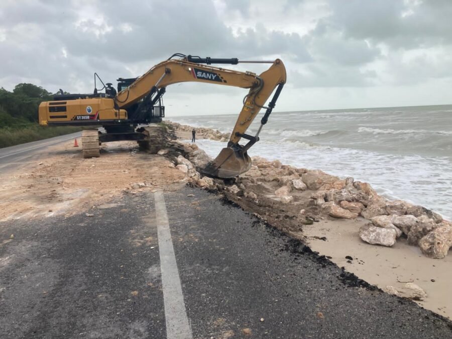 El Centro SICT-Campeche reportó que el tramo Isla Aguada-Champotón, km 107+000, de la carretera federal libre de peaje Ciudad del Carmen-Campeche, se vio afectado por los efectos del huracán Milton.