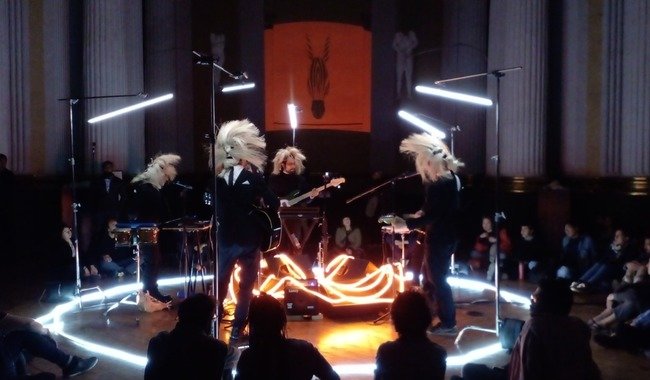 - Su mezcla de sonido y estilos, combinado con música experimental, performance-burlesque, video, diseño de moda, jamming y sátira generó una experiencia musical distinta