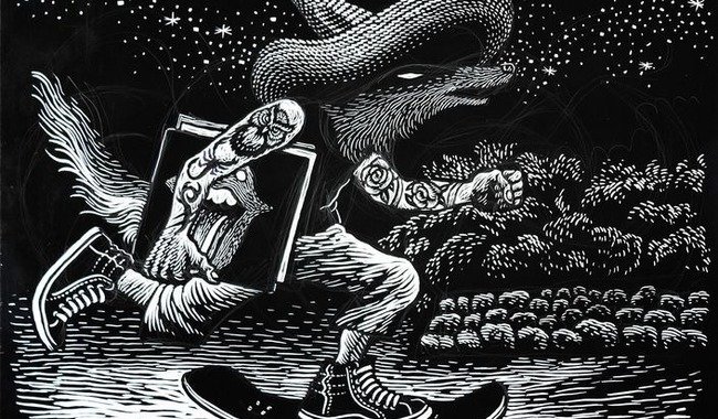 En ella, se exponen más de 200 piezas como placas de linóleo y piedra, así como discos, guitarras, patinetas, carteles de conciertos y playeras intervenidas por el artista mexicano (nacido en 1976) y que ha sido reconocido en México, Bélgica y Suecia, principalmente. Su arte es sencillamente fantástico.