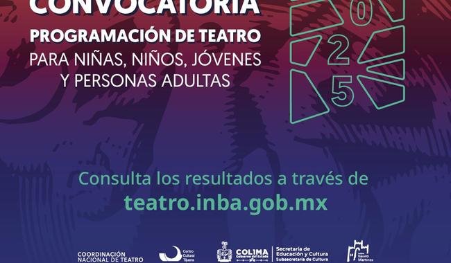 La Secretaría de Cultura del Gobierno de México y el Instituto Nacional de Bellas Artes y Literatura, a través de la Coordinación Nacional de Teatro (CooNT), presentan los resultados de la convocatoria para conformar la Programación de Teatro para niñas, niños, jóvenes y personas adultas de la temporada correspondiente a 2025 en los espacios teatrales del Centro Cultural del Bosque del INBAL y en colaboración con el teatro Isauro Martínez, el Centro Cultural Tijuana (CECUT) y la Subsecretaría de Cultura del Gobierno del estado de Colima.