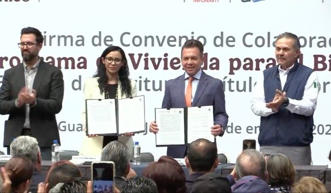 Guadalajara, Jalisco; 30 de enero de 2025.- La Secretaría de Desarrollo Agrario, Territorial y Urbano (Sedatu) encabezada por Edna Vega Rangel y el gobierno de Jalisco por Jesús Pablo Lemus Navarro, firmaron un convenio de colaboración para implementar el Programa de Vivienda para el Bienestar (PVB), el cual proyecta realizar en este sexenio 44 mil 500 acciones en beneficio de las familias jaliscienses más vulnerables.